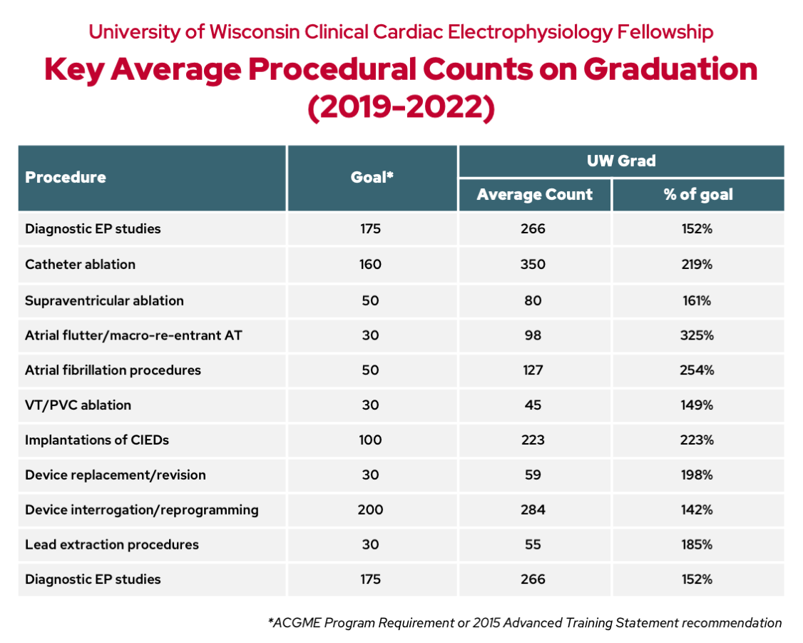 Image Key Outcomes Two-thirds of UW CCEP graduates have achieved careers in academic medicine 100% board pass rate for all graduates Graduate with procedure counts far exceeding program requirements and advanced training statement recommendations Recent Graduates View list of recent graduates (PDF)